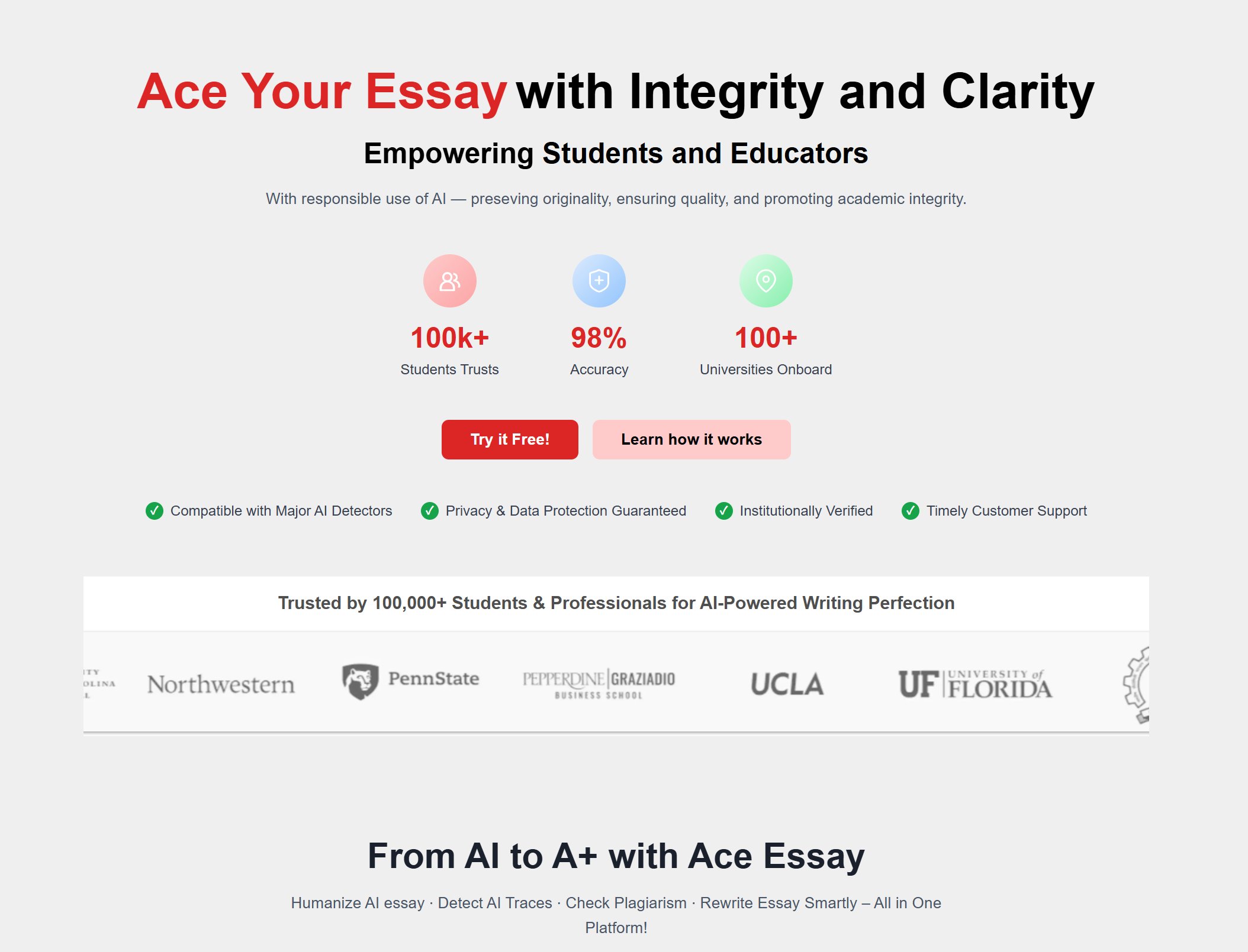 - Long-Form Content Support: AceEssay excels at handling long documents, such as essays, academic papers, and business reports, ensuring thorough analysis even for extensive texts.